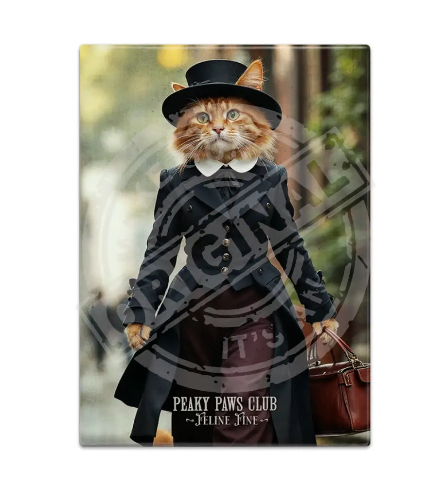 PEAKY PAWS CLUB - FELINE FINE - Ginger Cat With Bag Fridge Magnet Metal Signs