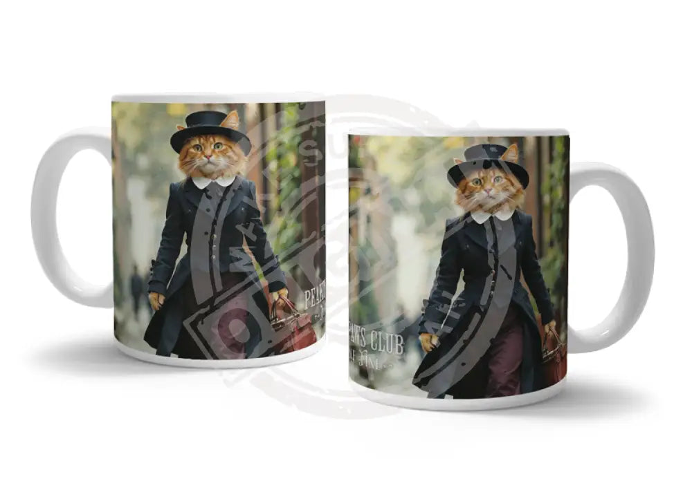 PEAKY PAWS CLUB - FELINE FINE - Ginger Cat With Bag Mug Metal Signs