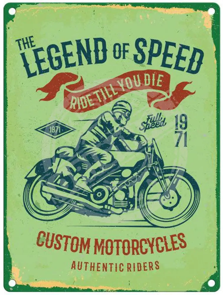 The legend of Speed custom motorcycles metal sign