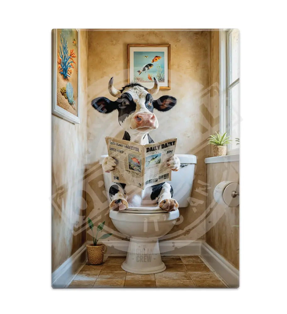 HIGHLAND CREW - DAIRY COW - On Toilet Stone Fridge Magnet Metal Signs