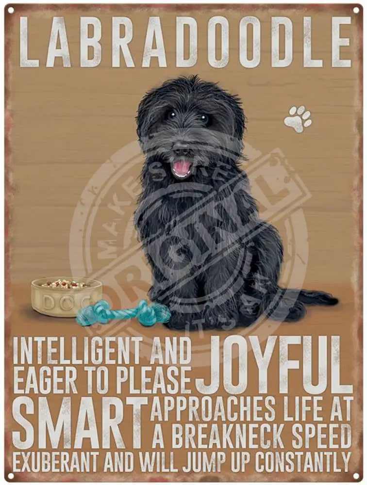Labradoodle Black Metal Signs