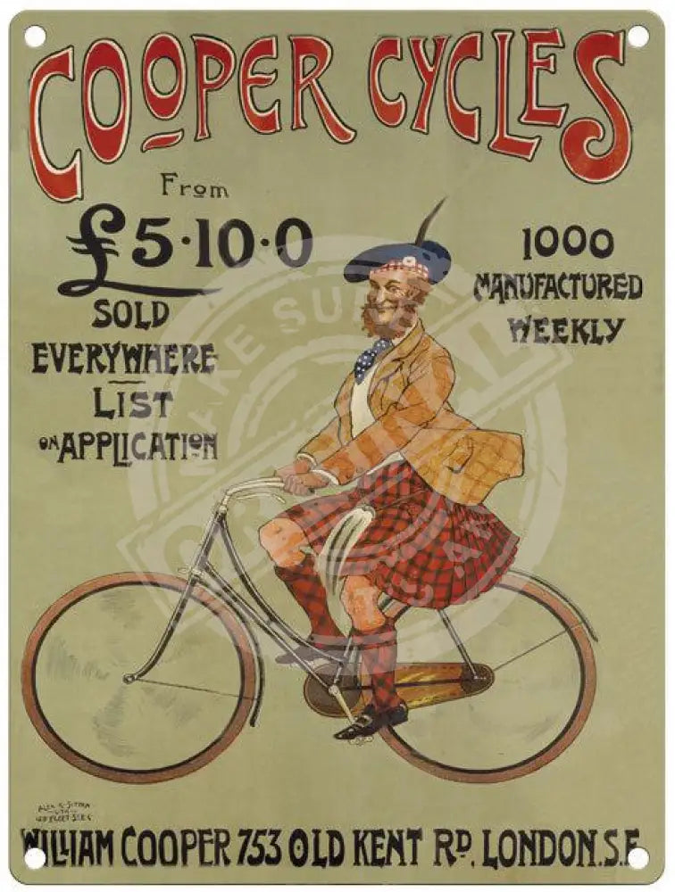 William Cooper Cycles vintage metal sign