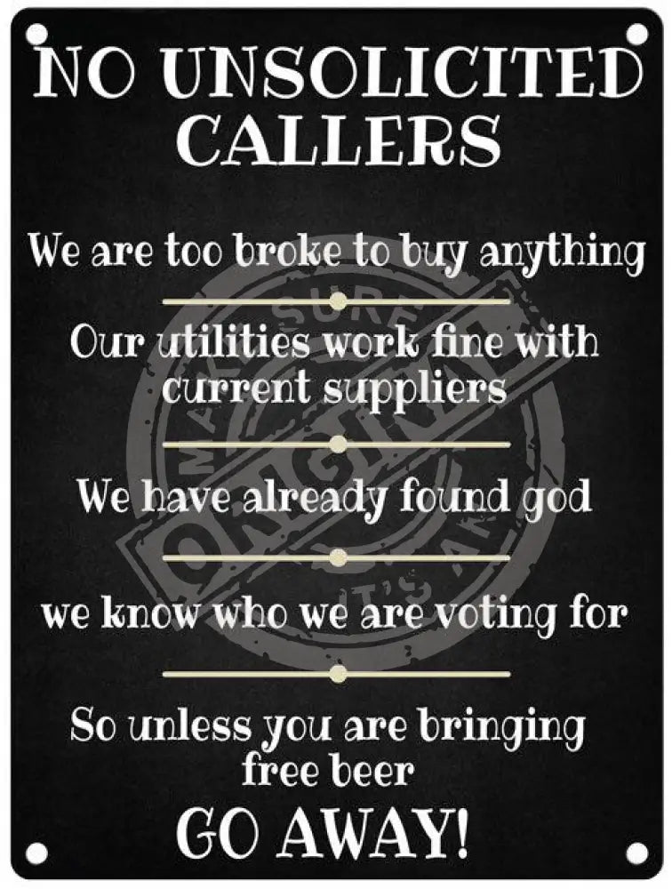 No Unsolicited Callers metal sign