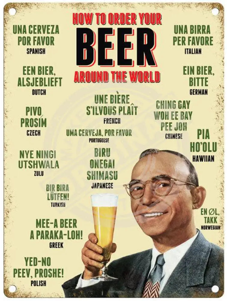 How to order your beer around the world metal sign