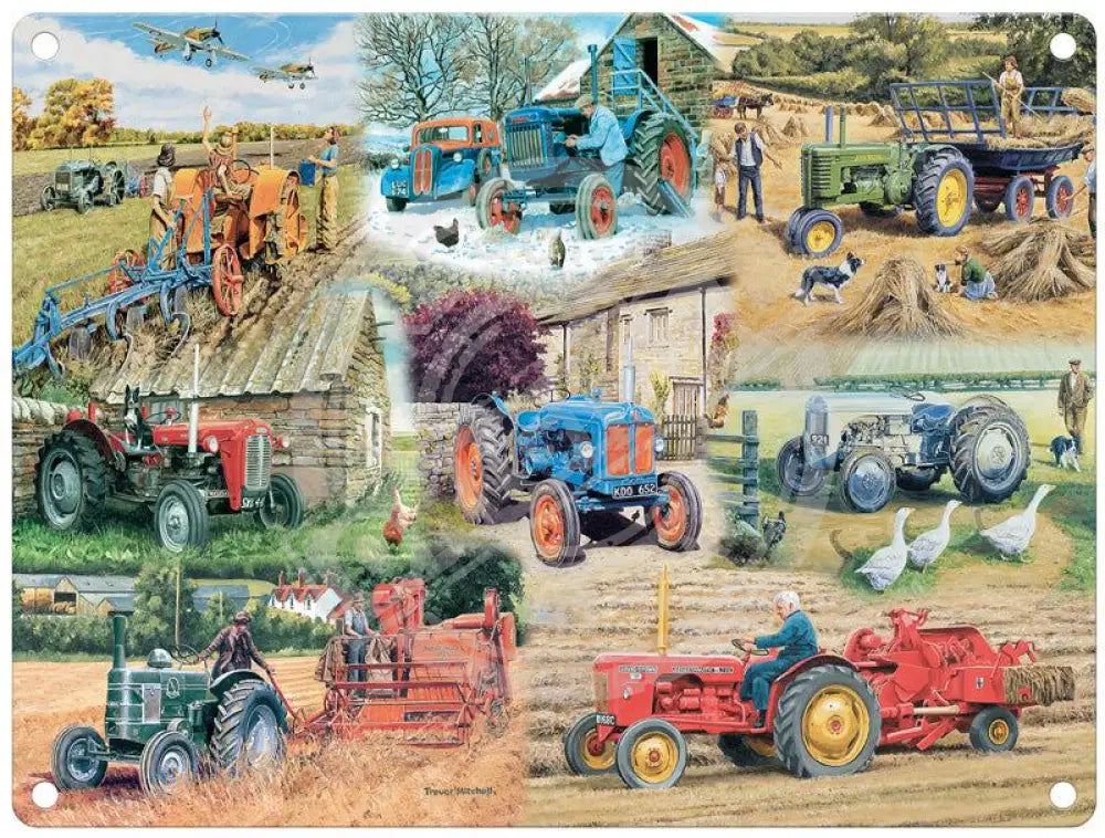 Trevor Mitchell Vintage Tractor Montage Metal Sign